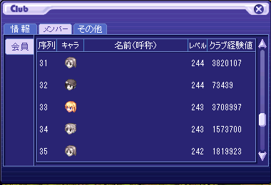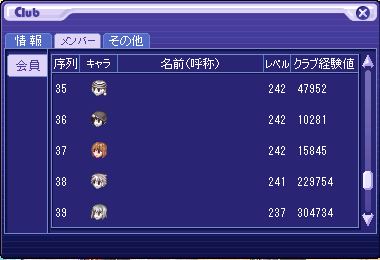 クラブ序列はレベル順≧経験値順ですが