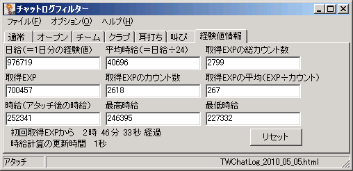 ログツールを使って鬼哭の城の経験値を測ってみたら