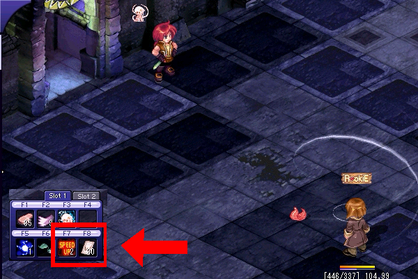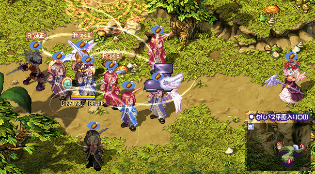 画面左上のマキチさんにスピアプをかけようとして